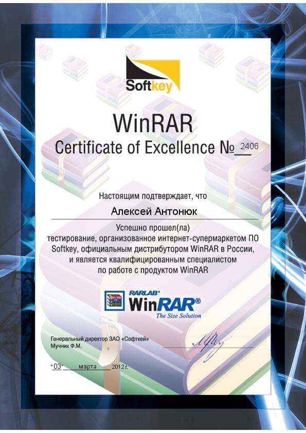 Квалифицированный специалист по работе с продуктом WinRARКвалифицированный специалист по работе с продуктом WinRAR